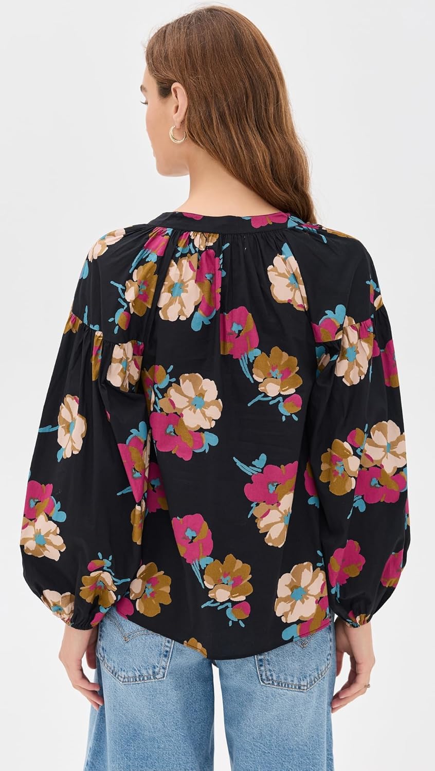Floral Print V-Neck Puff Sleeve Cotton Top