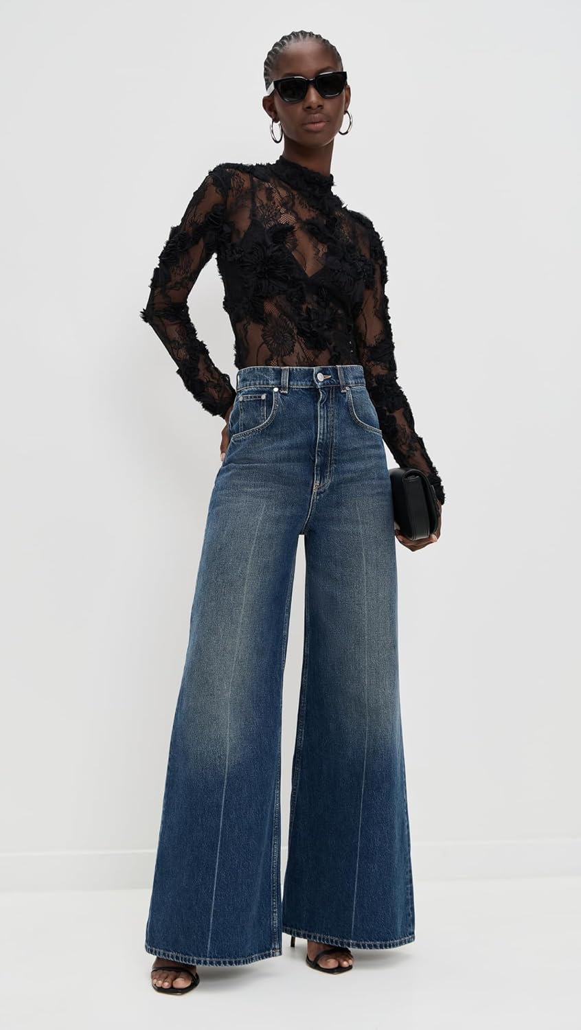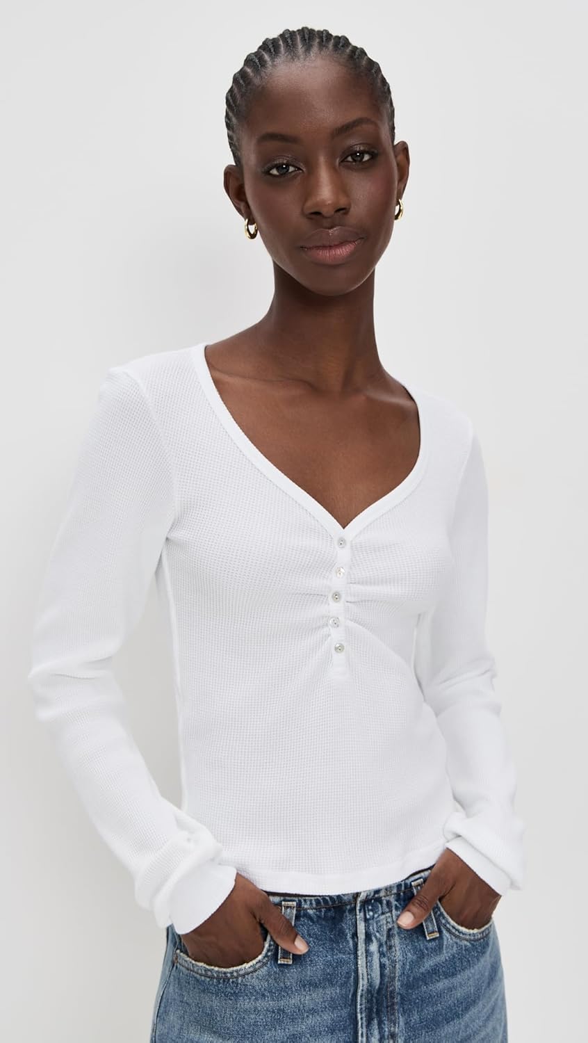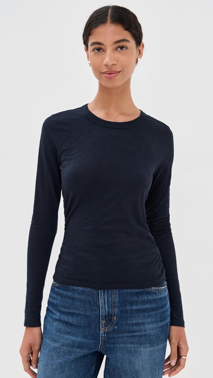 Ribbed V-Neck Pleated Long-Sleeve Top