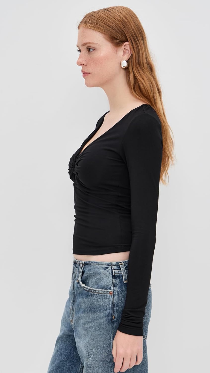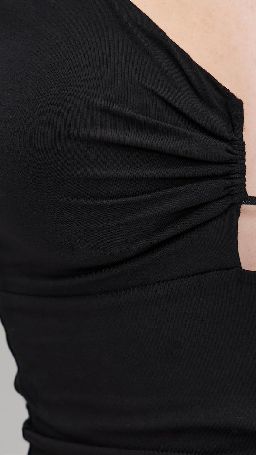 This top features a close-fitting silhouette that feels like a second skin. The deep V-neck and cutout details create a sexy, sophisticated aesthetic. It’s versatile and can be paired with high-waisted jeans for a casual, chic look or a skirt for a more formal look.