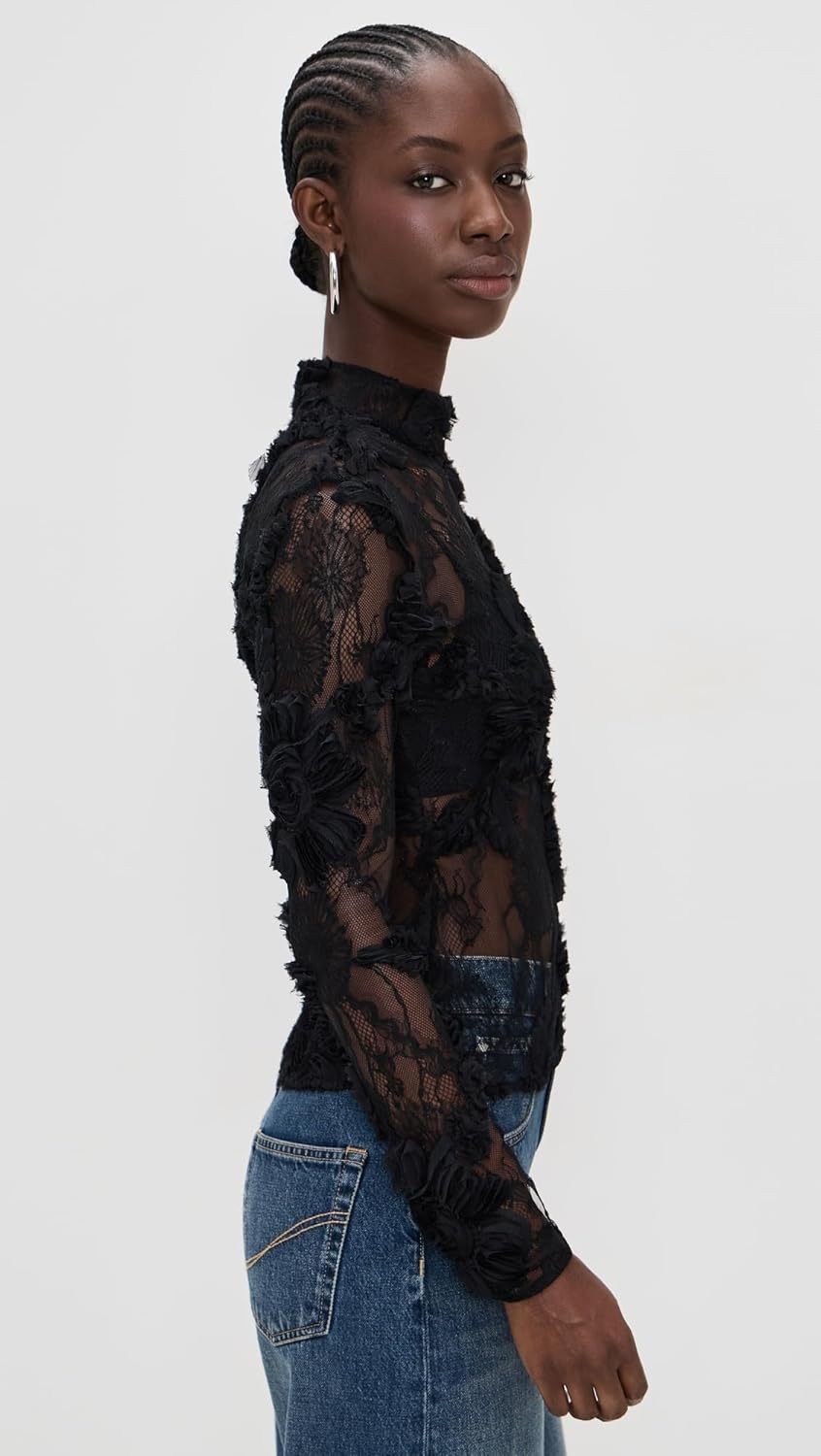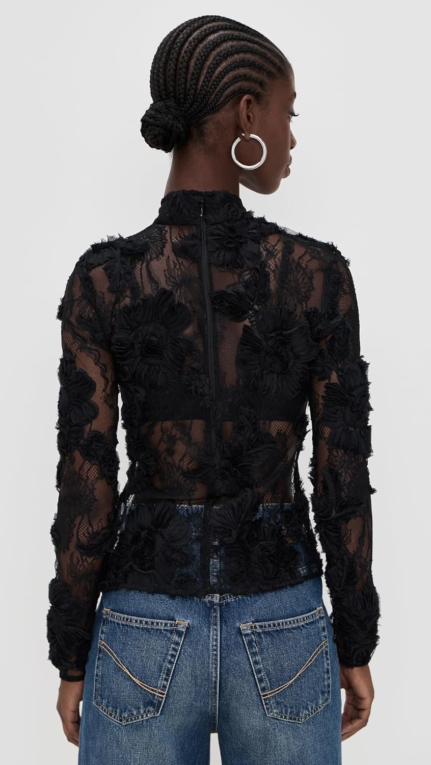 3D Floral Lace: Embellished with delicate 3D floral lace appliqués, it adds texture, dimension, and a romantic, feminine touch. Sheer lace panels and floral details make this top a stylish statement piece.