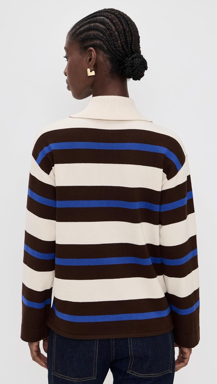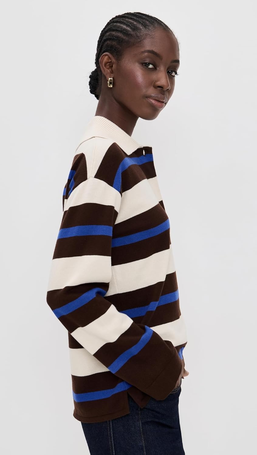 Bold Stripe Pattern: The bold brown and blue stripes create a striking and stylish look. The high-contrast stripes add a playful yet sophisticated touch to the sweater.