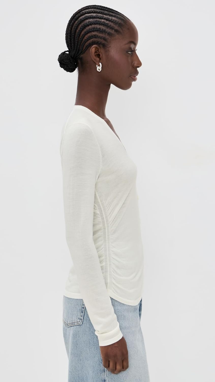 V-Neck: The classic V-neck design is elegant and versatile. It can be worn layered or alone, and easily paired with a necklace.