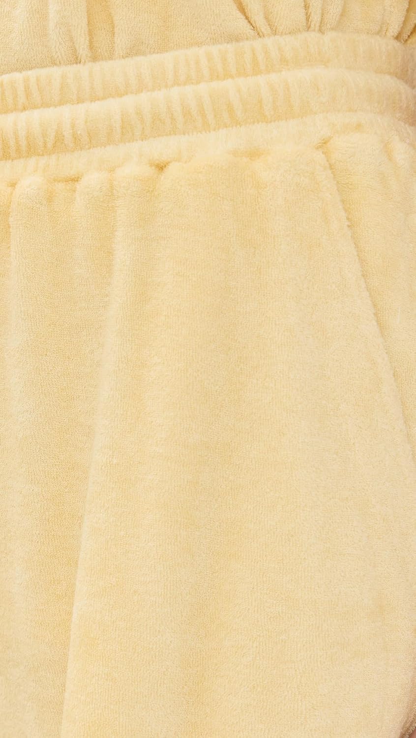 These shorts are made from a blend of 50% viscose, 30% cotton, and 20% Tencel™ Lyocell fibers for soft, breathable, and eco-friendly comfort. The viscose fibers create a smooth drape, the cotton fibers offer a natural feel, and the Tencel™ Lyocell fibers are sustainable and moisture-wicking.